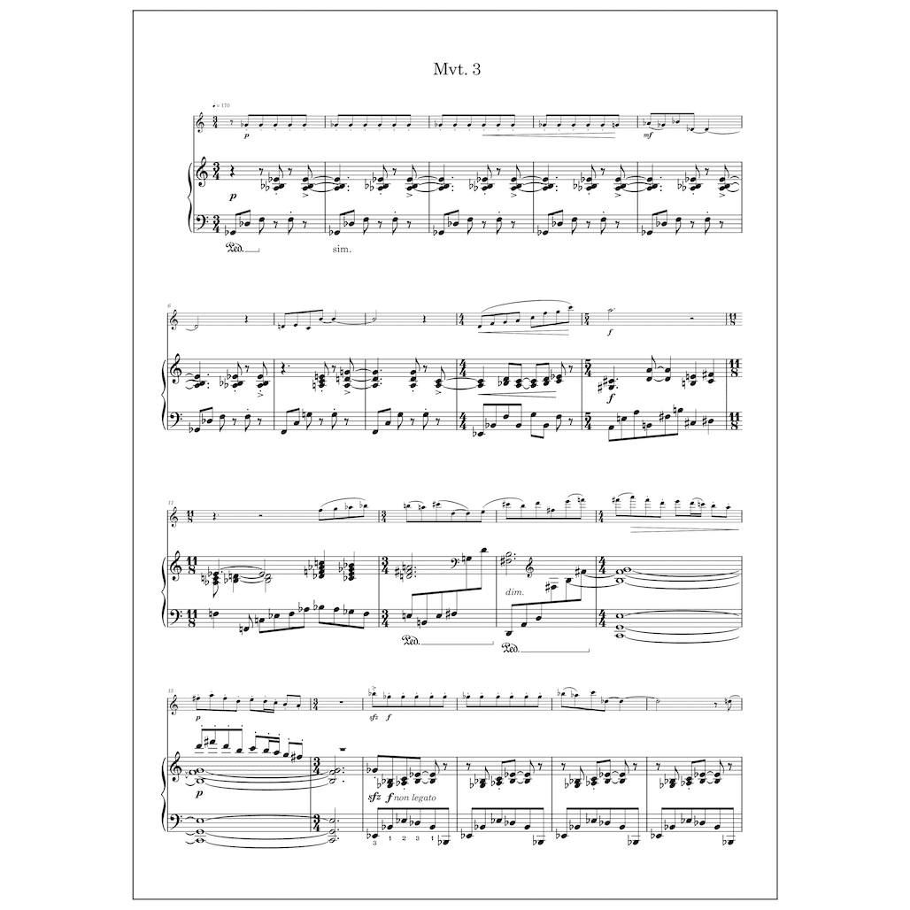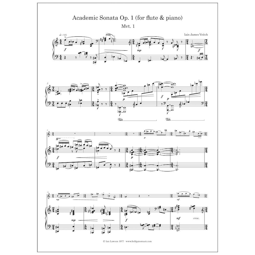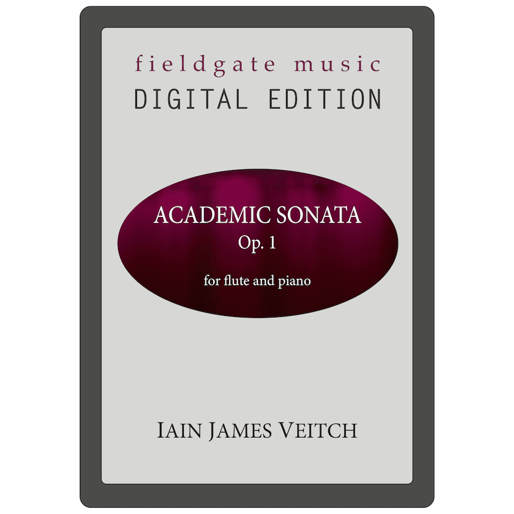 Academic Sonata Op. 1 (for flute and piano) is the first of five ‘academic’ sonatas written for various instrumental groupings. The ‘Academic’ tag stems from the fact that these pieces were written when the composer was a student at Cardiff University during the late 70s.